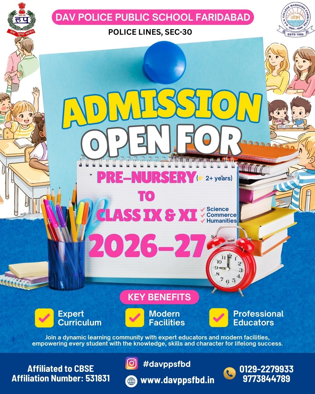 DAV Police Public School, Faridabad Sector-30, Police Lines, Faridabad, Haryana - 121003 Contact: 0129-2279933, Mb. 97738-44789 E-mail Id: davppsfbd@gmail.com